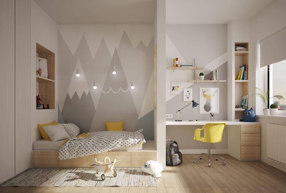 Trong trường hợp phòng ngủ của bé có diện tích nhỏ, bố mẹ có thể tận dụng các nguyên tắc sắp xếp nội thất để tạo sự hợp lý trong không gian.